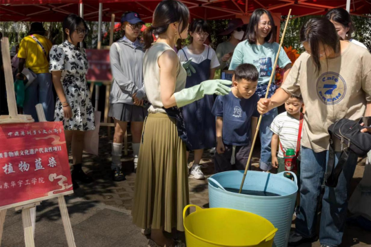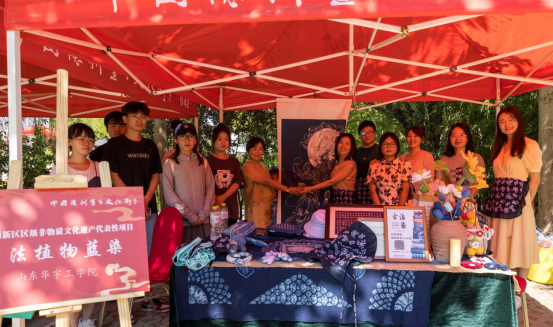 6月10日,由德州天衢新区党工委管委会、德州市文化和旅游局联合主办的2023年德州市“文化和自然遗产日”非遗宣传展示活动在德州天衢新区董子文化街举行。我校william威廉中文官网培育的非遗蓝染项目受邀参加,植染艺术工作室的非遗传承人曾敏老师带领学生团队现场沉浸式交流体验与蓝染成果推介活动,吸引了众多参观者。