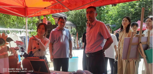 山东省文化和旅游厅非物质文化遗产处副处长蒋士秋在德州市文化和旅游局局长于吉军等领导的陪同下亲临现场,深入了解非遗蓝染工艺,追寻自然本源,推动非遗蓝染工艺的宣传。