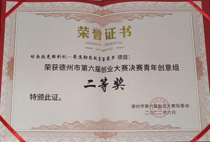 6月9日,德州市第六届创业大赛决赛在德州市人力资源市场主楼三楼会议室举行,经过激烈角逐,我校《球面激光雕刻机—聚焦助农致富宝葫芦》项目以第二名的成绩获得青年创意组二等奖,《轴承自动维护保养一体机》项目以第4名的成绩获得三等奖。此外,德州市人民政府常务副市长与我校学生亲切交谈并对获奖项目给予肯定。